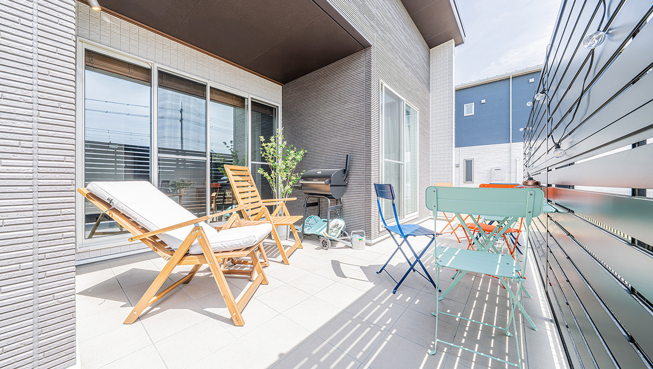室内と屋外をフラットにつなぐ広々としたウッドデッキや、景色を一枚の絵のように切り取るピクチャーウインドウを採用。住まいのどこにいても、自然の移ろいを身近に感じられる設計です。