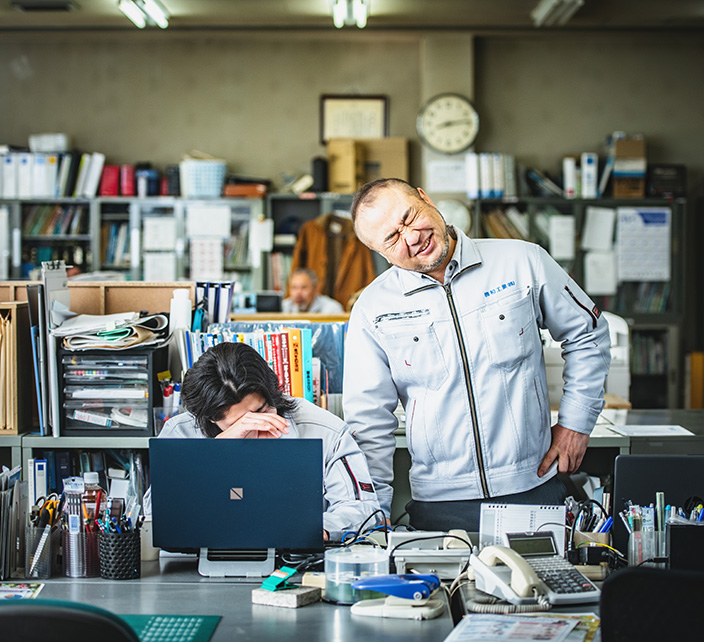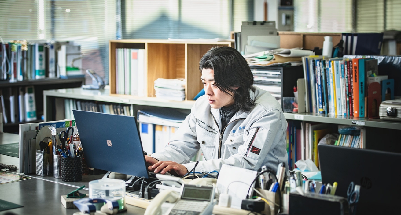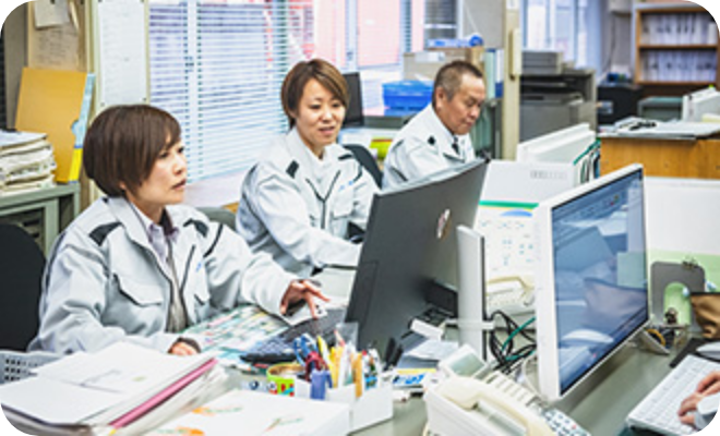 工程スケジュールの確認や、現場の記録管理、図面確認などデスクワークを行います。