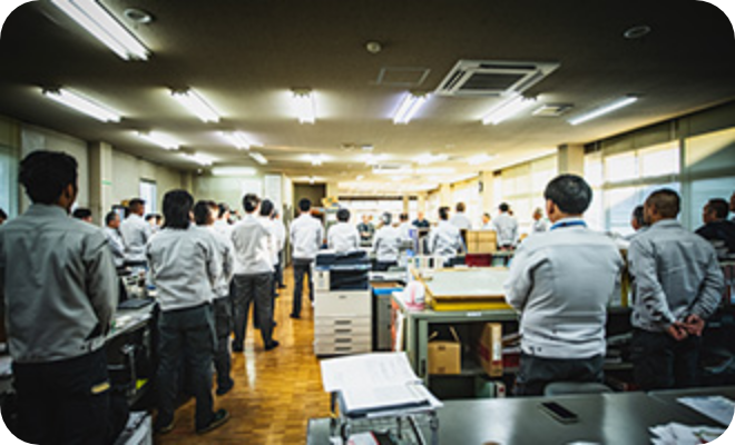 社長の訓示や情報共有をして皆が顔を合わせてからその週が始まります。