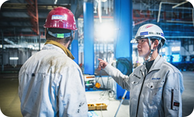 協力業者さんと打合せや作業内容の確認、指示などを行います。